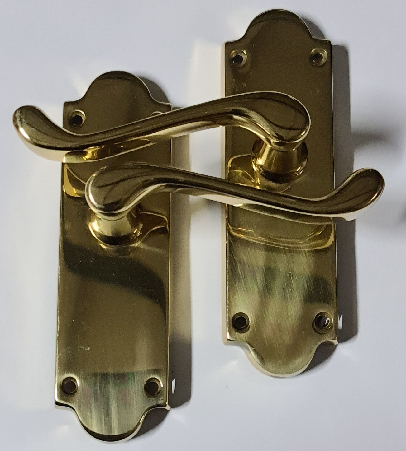 Bertelli Chrissi Shaped Latch Scroll Lever Door Handle Set Polished Brass
