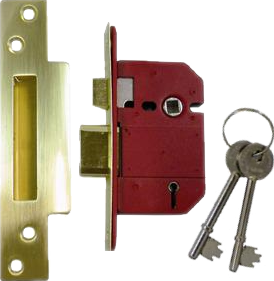 This brass 65mm mortice sashlock is usually installed within the stile or lock block of a door. The ERA 65mm 5 lever sashlock is a high security door lock that features an in-line arrangement of the bolt, bolt stump and levers when the bolt is in the locked position.