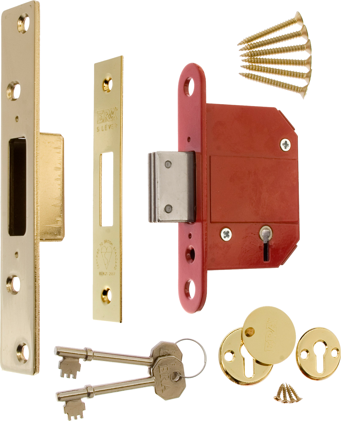 ERA 44mm Backset Polished Brass 5 Lever Mortice Door Lock