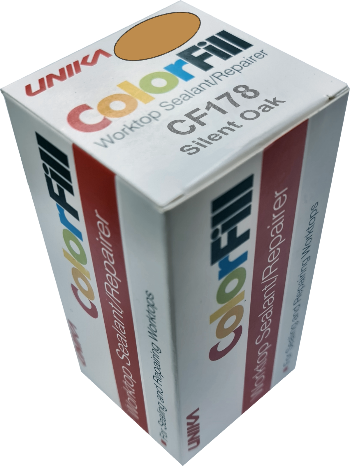 Unika Silent Oak ColorFill is the No.1 joint sealant and filler used for the installation and repair of laminated surfaces, it is premixed and ready to use and sets within an hour, once cured Silent Oak colour matched sealant will provide a long-lasting durable finish. Silent Oak ColorFill is an essential product for the furniture and installation industry, you can use it to fill gaps and plug holes in all laminate melamine, and most plastic surfaces.