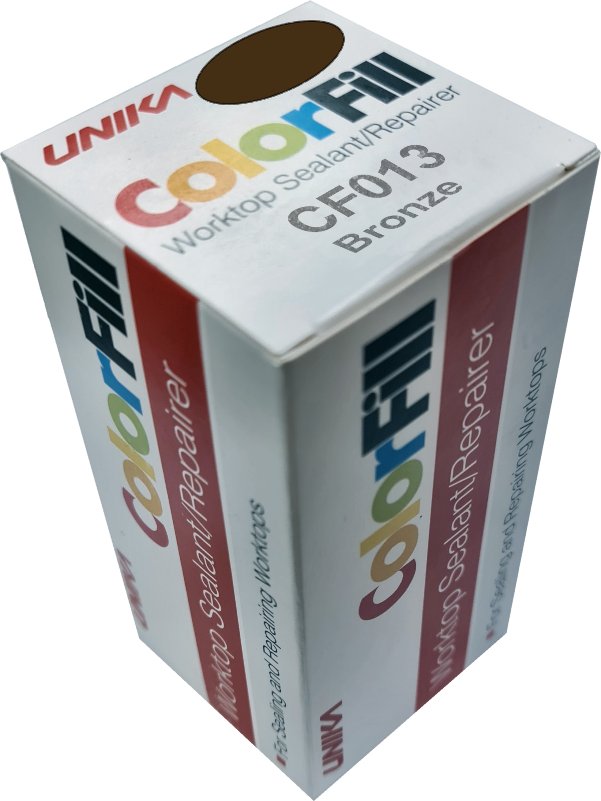 Unika Bronze ColorFill is the No.1 joint sealant and filler used for the installation and repair of laminated surfaces, it is premixed and ready to use and sets within an hour, once cured Bronze colour matched sealant will provide a long-lasting durable finish. Bronze ColorFill is an essential product for the furniture and installation industry, you can use it to fill gaps and plug holes in all laminate melamine, and most plastic surfaces.
