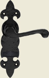 This pair of Fleur De Lys black iron door handles are premium quality hand made handles from the Tudor collection, manufactured from malleable iron using traditional casting methods and finished in a protective enamel coating, suitable for external and interior applications.
