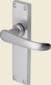 Windsor Satin Chrome Lever Latch Handle on Long Plate