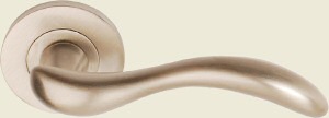 This pair of Kend door lever on rose are part of our premier Italian designer door lever series and feature satin nickel scroll levers mounted on a 52mm diameter screw on satin nickel rose that conceals the fixings providing a modern sleek stylish appearance.