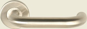 This pair of Denver lever on rose door handles feature satin stainless steel return to door bar levers mounted on a 52mm diameter satin stainless steel rose that conceals the fixings providing a modern sleek stylish appearance.