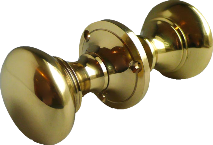 This quality rim lock knob set features a lacquered polished brass finish with mushroom shaped knobs with a 50mm diameter and a rose with a 54mm.
