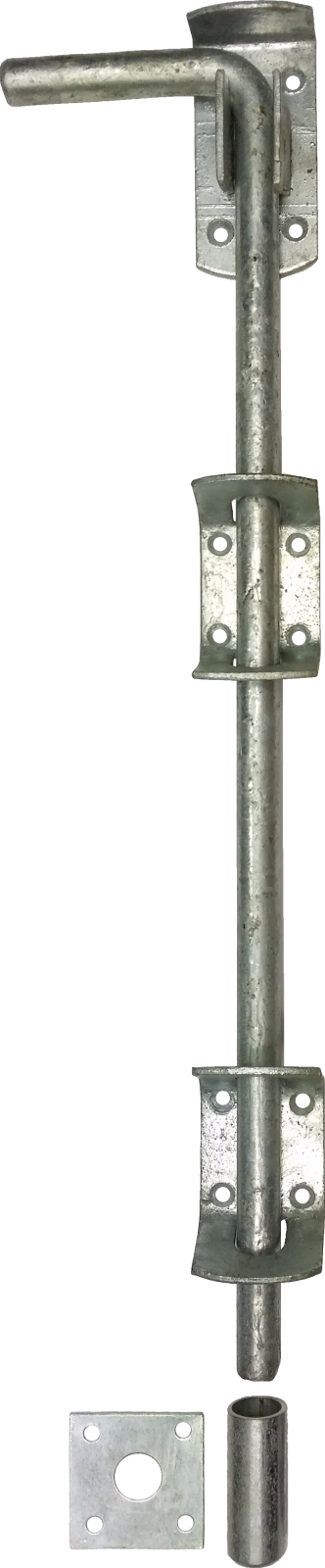 This 18 inch garage drop bolt is ideal for garage doors, utility doors and gates etc. This drop down bolt is supplied in a hot spelter dipped galvanised finish that will prevent corrosion for many years, and can be over-painted if required using and etching primer and suitable top coat.