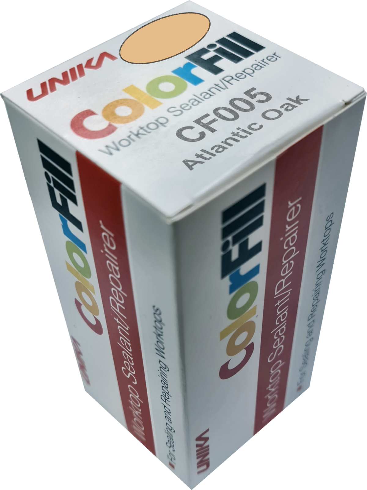 Unika Atlantic Oak ColorFill is the No.1 joint sealant and filler used for the installation and repair of laminated surfaces, it is premixed and ready to use and sets within an hour, once cured Atlantic Oak colour matched sealant will provide a long-lasting durable finish. Atlantic Oak ColorFill is an essential product for the furniture and installation industry, you can use it to fill gaps and plug holes in all laminate melamine, and most plastic surfaces.