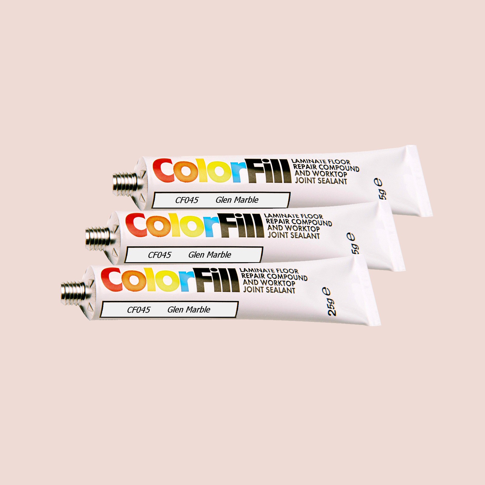 This 3 tube pack of Glen Marble Colorfill CF045 worktop jointing compound is specifically formulated to seal and bond worktop joints and mitres, it will provide a strong near invisible join, resistant to heat, moisture ingress and household cleaners. This pack of 3 tubes is sufficient to seal up to four standard 40mm thick worktop joints.