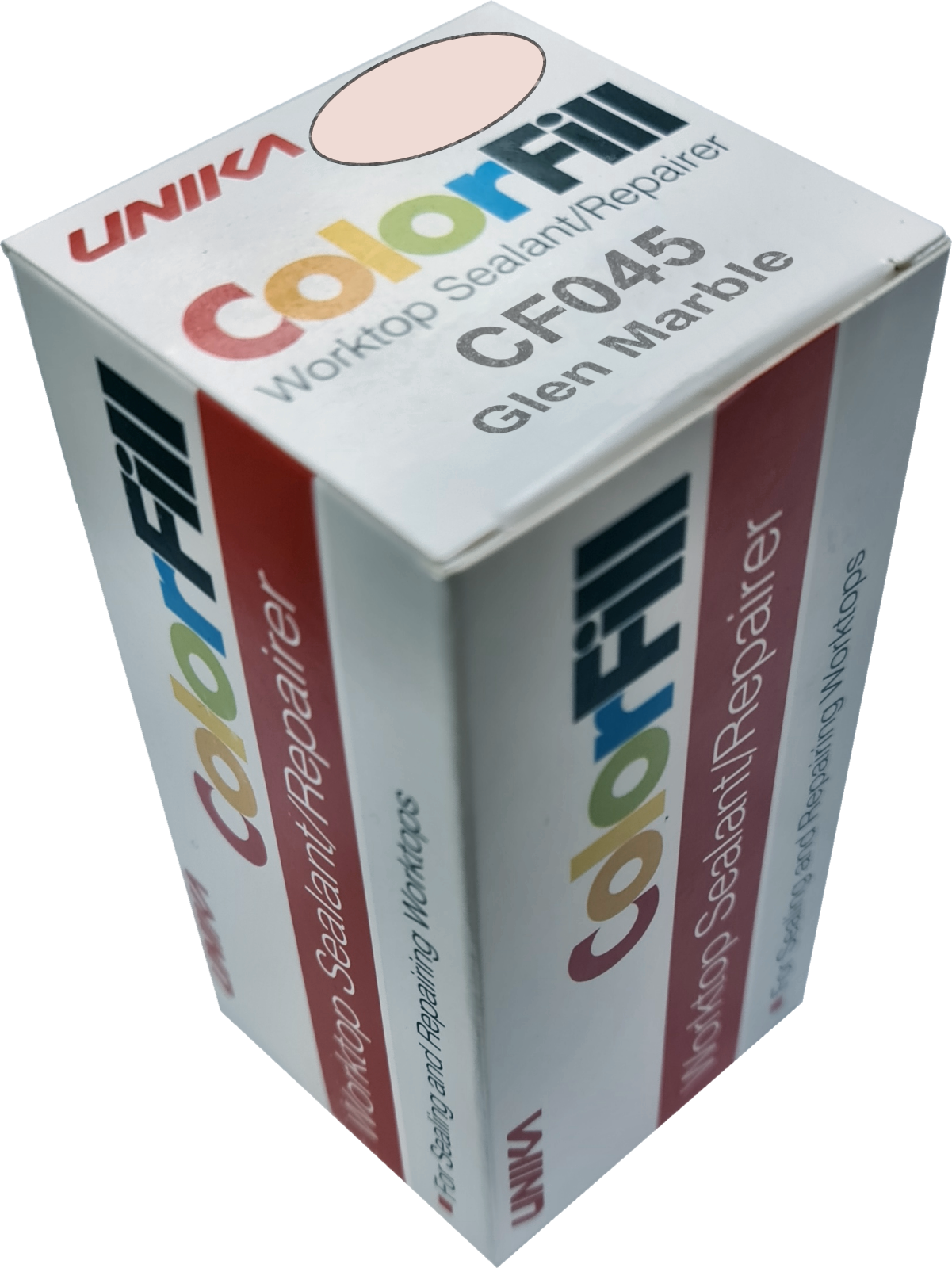 Unika Glen Marble ColorFill is the No.1 joint sealant and filler used for the installation and repair of laminated surfaces, it is premixed and ready to use and sets within an hour, once cured Glen Marble colour matched sealant will provide a long-lasting durable finish. Glen Marble ColorFill is an essential product for the furniture and installation industry, you can use it to fill gaps and plug holes in all laminate melamine, and most plastic surfaces.