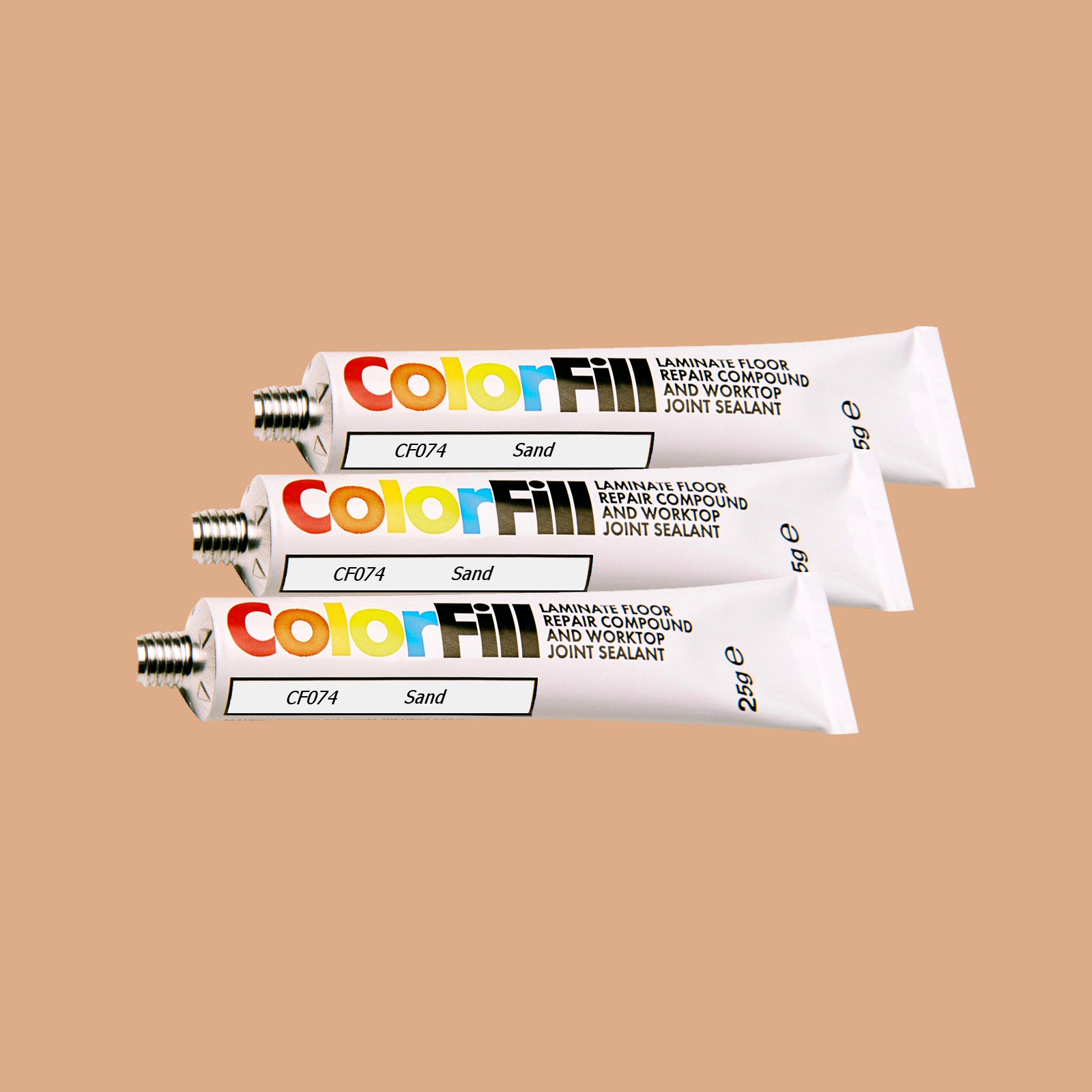 This 3 tube pack of Sand Colorfill CF074 worktop jointing compound is specifically formulated to seal and bond worktop joints and mitres, it will provide a strong near invisible join, resistant to heat, moisture ingress and household cleaners. This pack of 3 tubes is sufficient to seal up to four standard 40mm thick worktop joints.