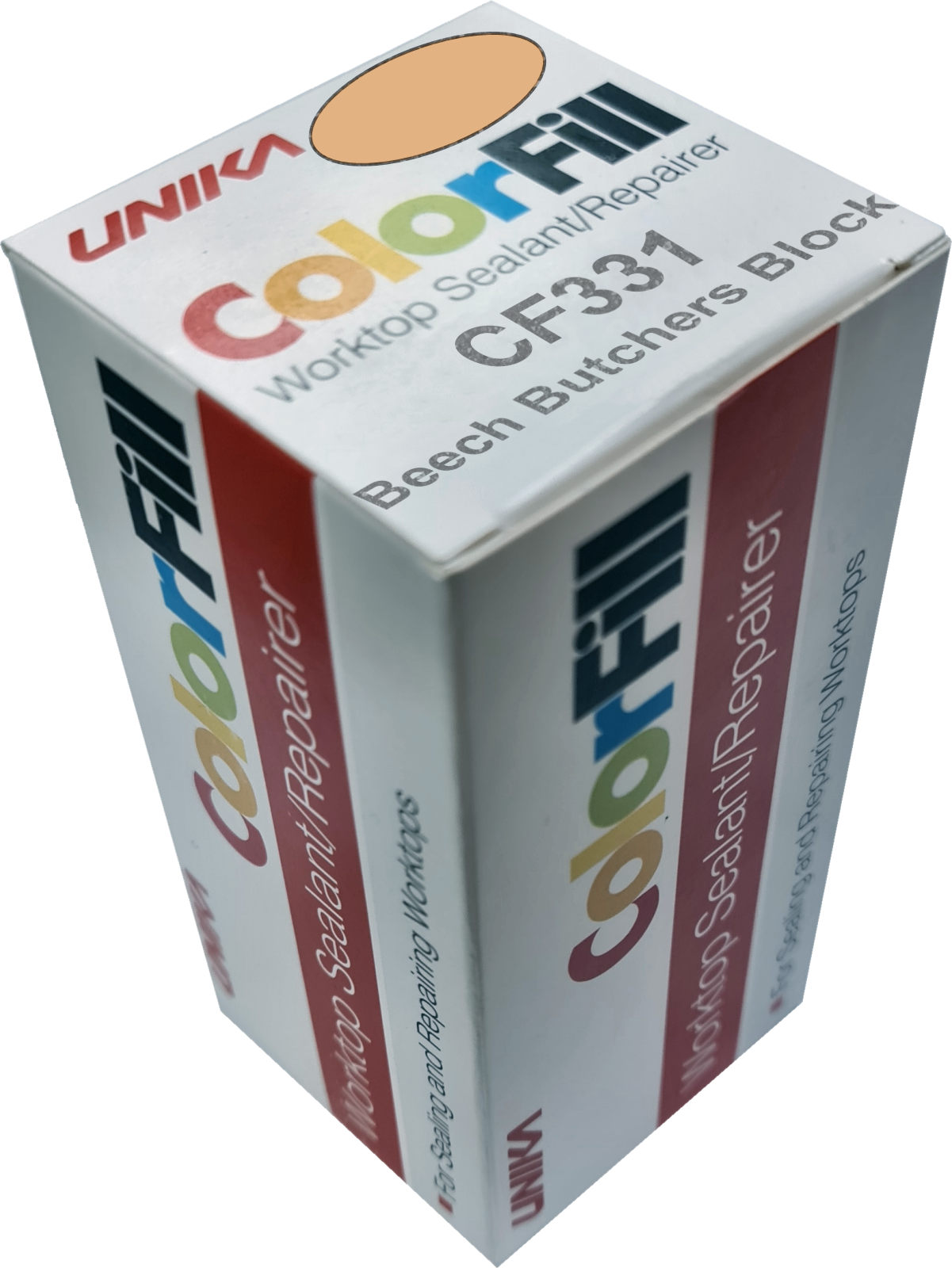 Unika Beech Butchers Block ColorFill is the No.1 joint sealant and filler used for the installation and repair of laminated surfaces, it is premixed and ready to use and sets within an hour, once cured Beech Butchers Block colour matched sealant will provide a long-lasting durable finish. Beech Butchers Block ColorFill is an essential product for the furniture and installation industry, you can use it to fill gaps and plug holes in all laminate melamine, and most plastic surfaces.