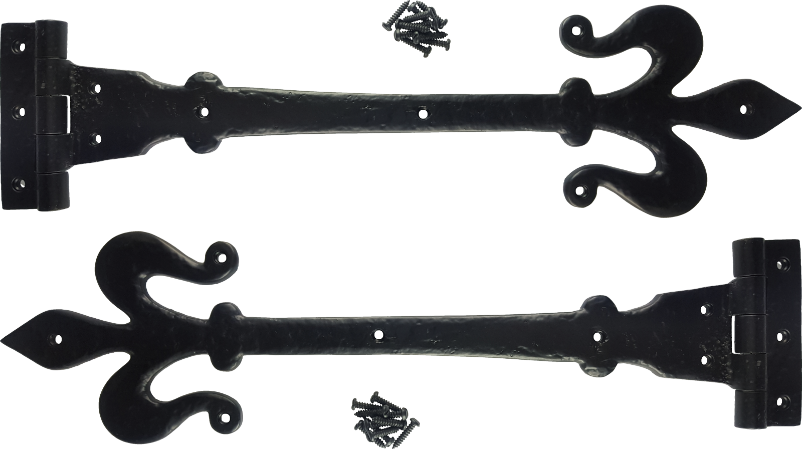This premium quality pair of reproduction cast iron black antique hinges feature a traditional fleur-de-lys design with a spear tip. These fully working hinges are ideal for medium & heavy duty applications such as doors and gates for traditional and period style properties.