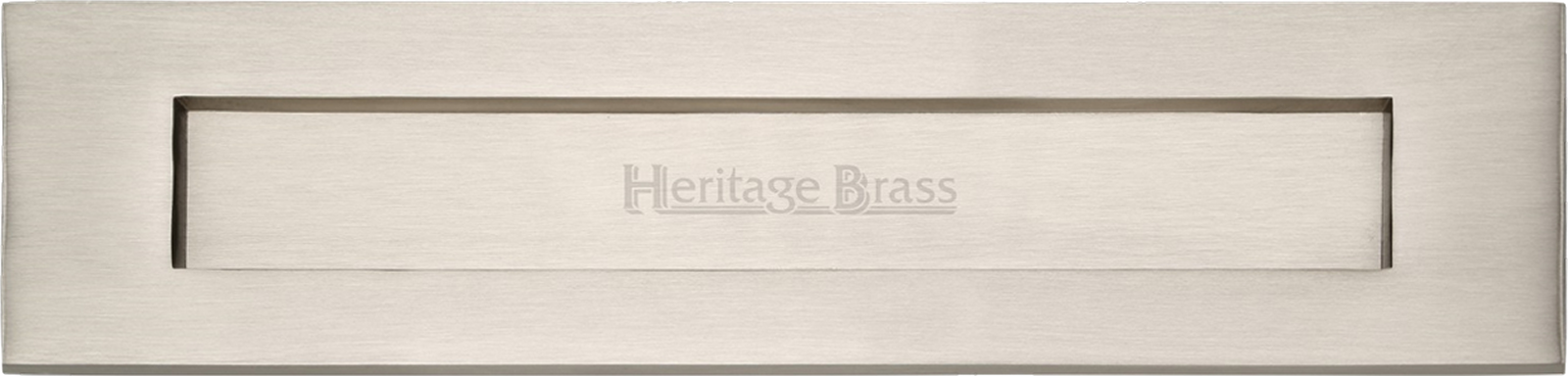 This premium UK quality letter box cover plate from the Heritage collection in a superior brushed satin nickel finish, is a UK designed piece and exceptionally well made, the perfect choice for discerning homeowners, high end property developers, and architects. This letterplate is suited to horizontal installations, and features a spring loaded letter-flap.