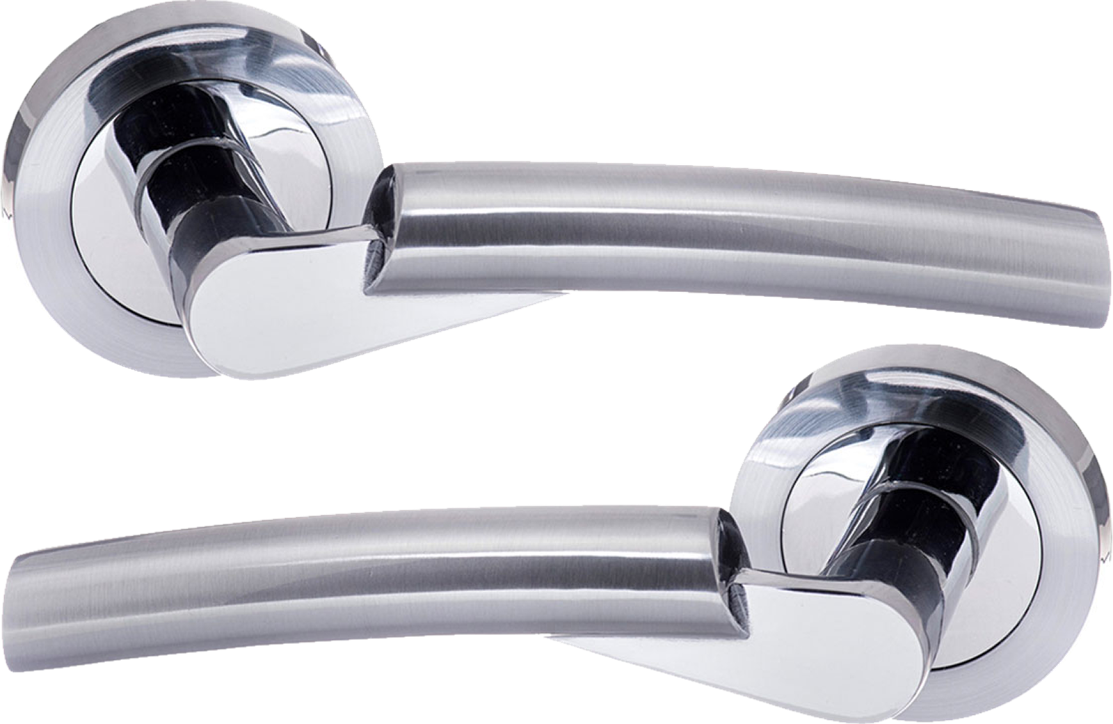 This Florida passage lever set is a premium quality designer door handle on rose set from the Status collection. This pair of Florida handles feature a brushed satin chrome lever & rose and a polished chrome handle shaft. The handles feature a round slightly curved lever with concealed rose fitting.
