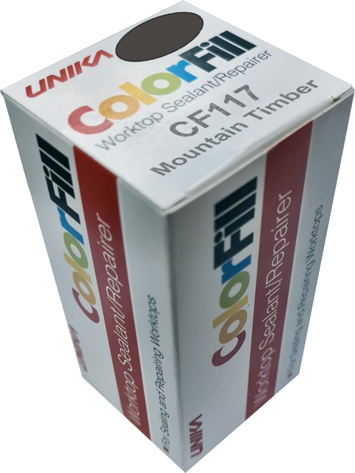 Unika Mountain Timber ColorFill is the No.1 joint sealant and filler used for the installation and repair of laminated surfaces, it is premixed and ready to use and sets within an hour, once cured Mountain Timber colour matched sealant will provide a long-lasting durable finish. Mountain Timber ColorFill is an essential product for the furniture and installation industry, you can use it to fill gaps and plug holes in all laminate melamine, and most plastic surfaces.