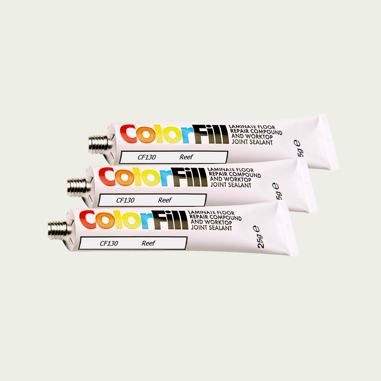 This 3 tube pack of Reef Colorfill CF130 worktop jointing compound is specifically formulated to seal and bond worktop joints and mitres, it will provide a strong near invisible join, resistant to heat, moisture ingress and household cleaners. This pack of 3 tubes is sufficient to seal up to four standard 40mm thick worktop joints.