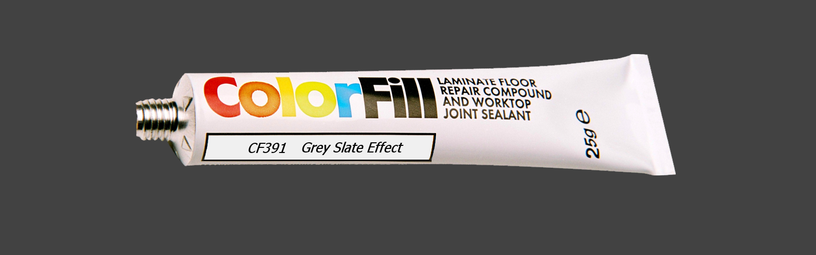 This tube of Grey Slate Effect Colorfill CF391 worktop jointing compound is specifically formulated to seal and bond worktop joints and mitres, it will provide a strong near invisible join, resistant to heat, moisture ingress and household cleaners. This one tube will seal a standard 40mm thick worktop joint.